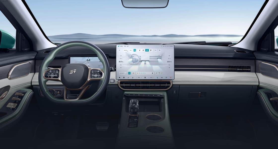 Интерьер выполнен в чёрных тонах с 10,25-дюймовым экраном приборной панели и 15,6-дюймовым центральным дисплеем, работающим на процессоре Qualcomm Snapdragon 8155, характерном для топовых смартфонов. Это обеспечивает высокую производительность мультимедийной системы и удобство управления функциями автомобиля.