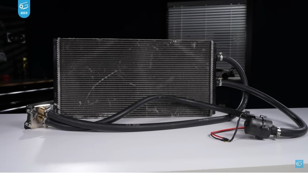 Радиатор BMW M4, используемый Geek Bay, имеет увеличенную площадь 600 x 350 мм. Водяной насос также взят от M4, а его производительность достигает около 1200 литров в час.