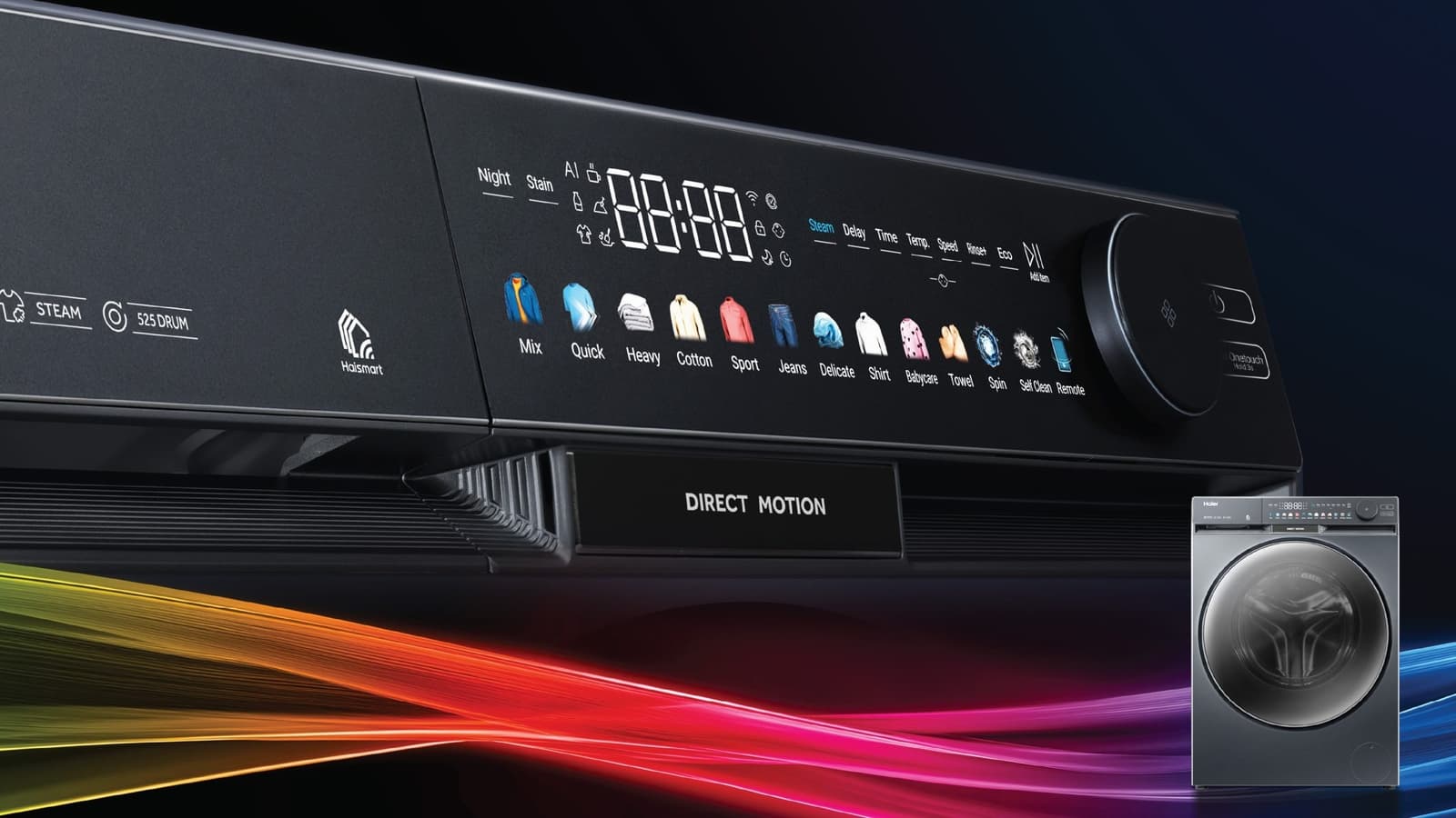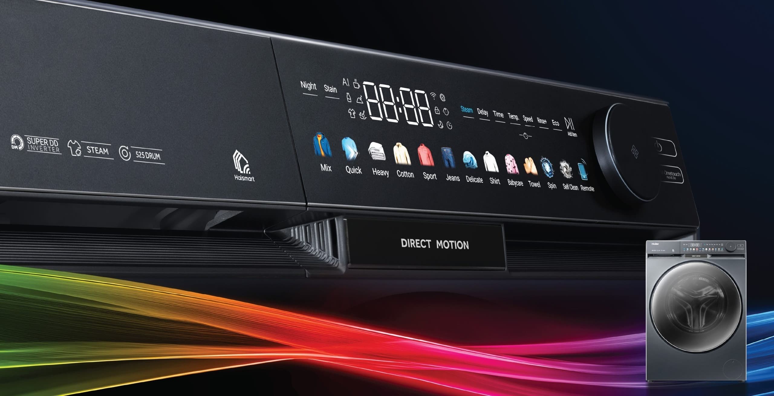 Компания Haier представила новейшую стиральную машину с фронтальной загрузкой F9, которая оснащена первой в Индии цветной сенсорной панелью управления на базе искусственного интеллекта, технологией AI One Touch и большим барабаном Super Drum диаметром 525 мм.