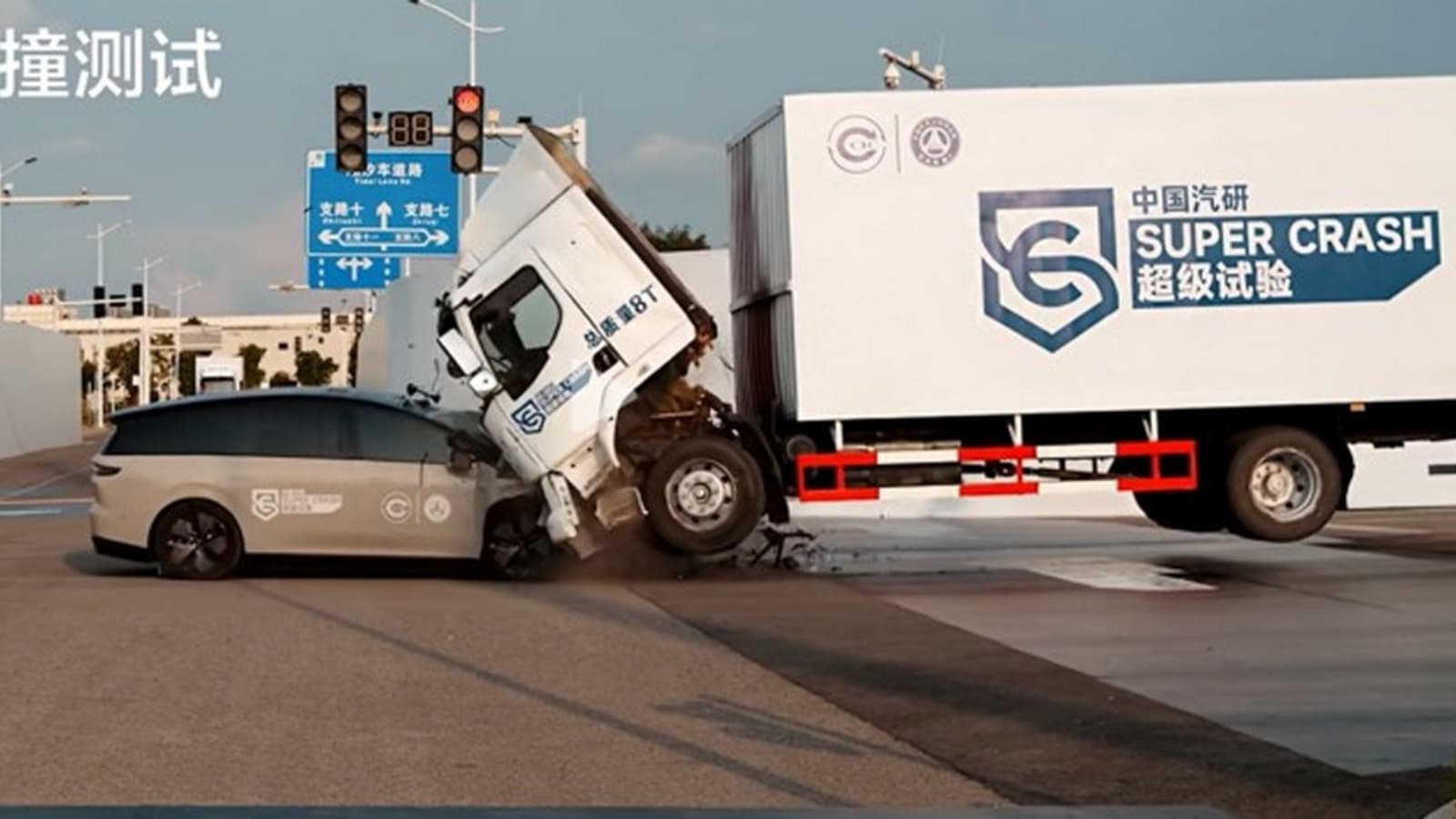 Видео, опубликованное компанией, показало, как колеса грузовика отрываются от земли, а его кабина почти отрывается от шасси. При этом Li Auto i8, включая передние, средние и задние стойки, а также дверные балки, остался целым. Девять подушек безопасности сработали корректно, батарея не загорелась, а двери автоматически разблокировались.