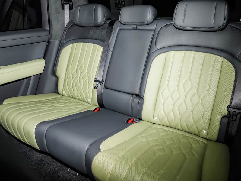 91,2% салона автомобиля покрыто мягкими материалами. Передние кресла регулируются по 12 направлениям при помощи электропривода, они также имеют обогрев, вентиляцию и функцию массажа. Кроме того, автомобиль оснащен премиальной аудиосистемой Dynaudio с 18 динамиками, атмосферной подсветкой с 256 цветами, холодильником с компрессорным мотором, двумя беспроводными зарядками мощностью 50 Вт для смартфона.