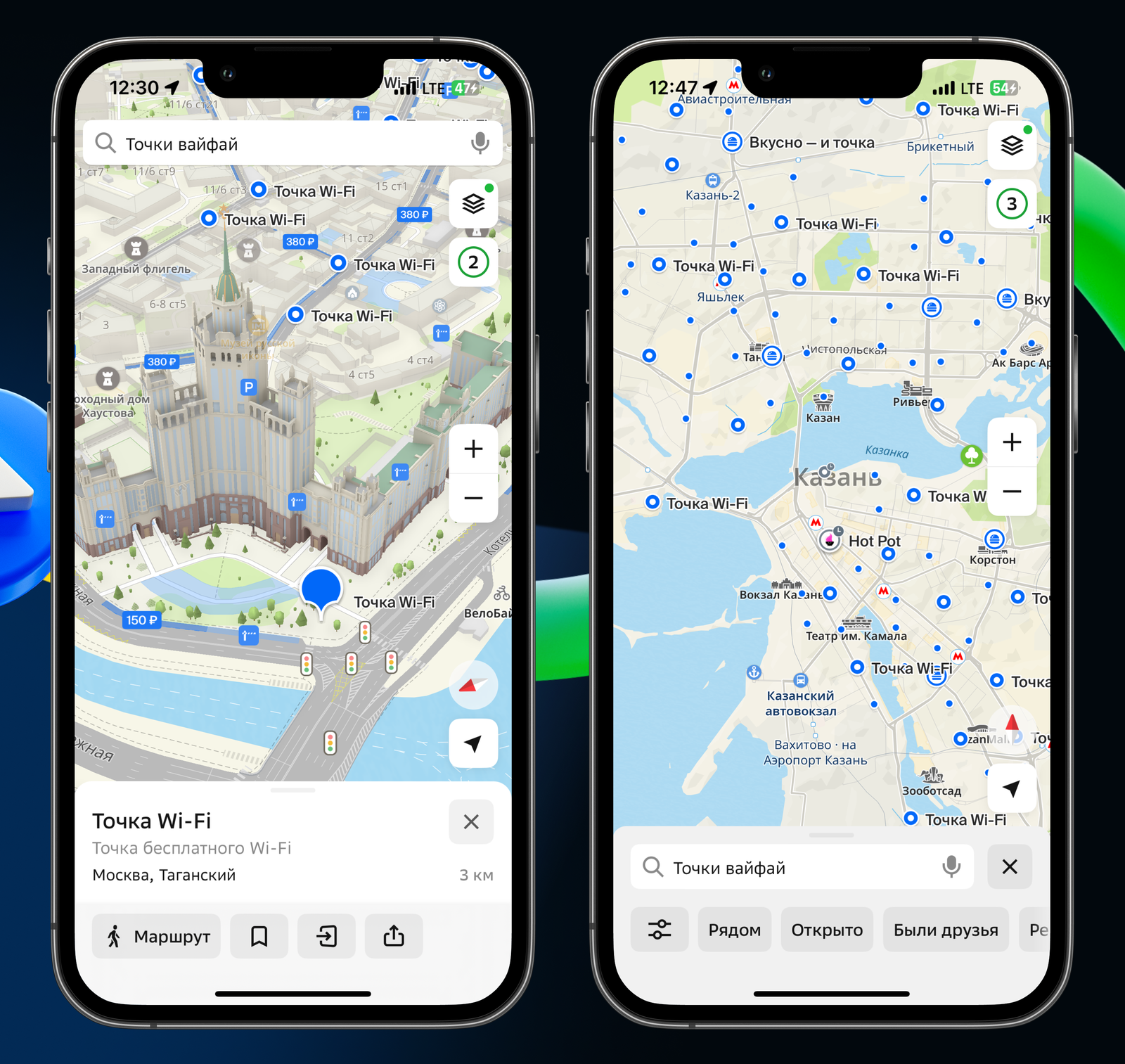 Найти точки Wi-Fi можно в поиске 2ГИС, например, «точки вайфай» или «wifi» — как в приложениях на Android и iOS, так и на сайте 2gis.ru.