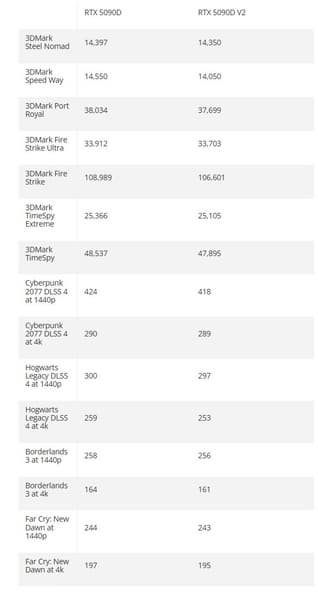 Китайские авторы раздобыли карту и сравнили её с обычной RTX 5090D. Оказалось, что разница минимальна. В большинстве случаев новинка отстаёт от первой версии всего на 2-3%, чем можно смело пренебречь.