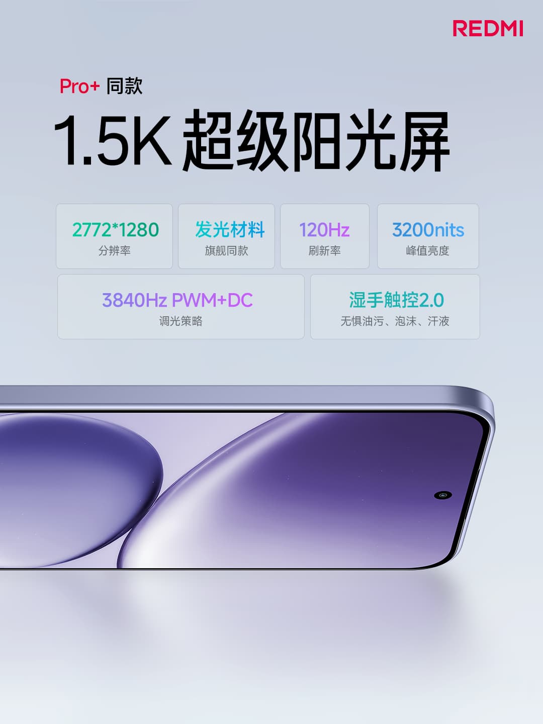 Redmi Note 15 Pro получил экран OLED с диагональю 6,83 дюйма, разрешением 1,5К, кадровой частотой 120 Гц, частотой регулировки ШИМ 3840 Гц. То есть тут вообще никаких различий с топовой версией.