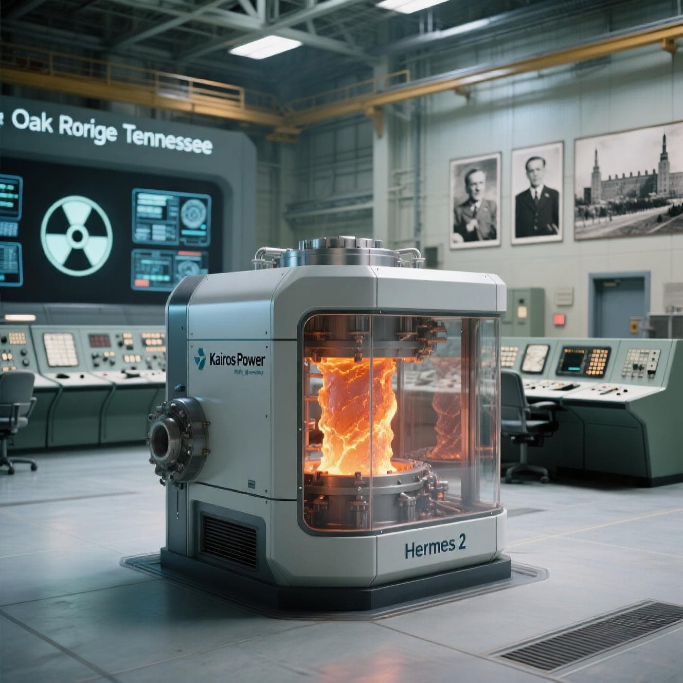 Технология реактора Kairos Power принципиально отличается от традиционных АЭС. Вместо воды в качестве теплоносителя используется расплавленная фторидная соль. Благодаря высокой точке кипения соли, реактор работает при относительно низком давлении, что существенно снижает затраты на строительство за счёт отказа от массивных высоконапорных защитных оболочек. Hermes 2 — это демонстрационный проект, расширяющий возможности первого реактора Hermes, закладка которого состоялась в июле прошлого года. Это было первое за более чем полвека полученное разрешение Комиссии по ядерному регулированию США на строительство реактора с неводяным охлаждением.