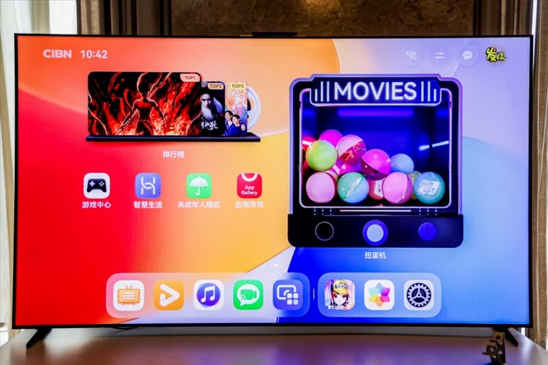 Устройство работает на процессоре Huawei Kirin 9020 с 12 ГБ оперативной памяти. Телевизор работает под управлением операционной системы HarmonyOS 5.0, которая предлагает главный экран, напоминающий экран смартфона, с иконками приложений и виджетами. Система поддерживает 4K-рендеринг интерфейса, высокую частоту обновления и плавающий сенсорный слой для многопальцевого ввода. Среди приложений — стриминговые сервисы, социальные сети и инструменты для работы, доступные в магазине приложений Huawei.