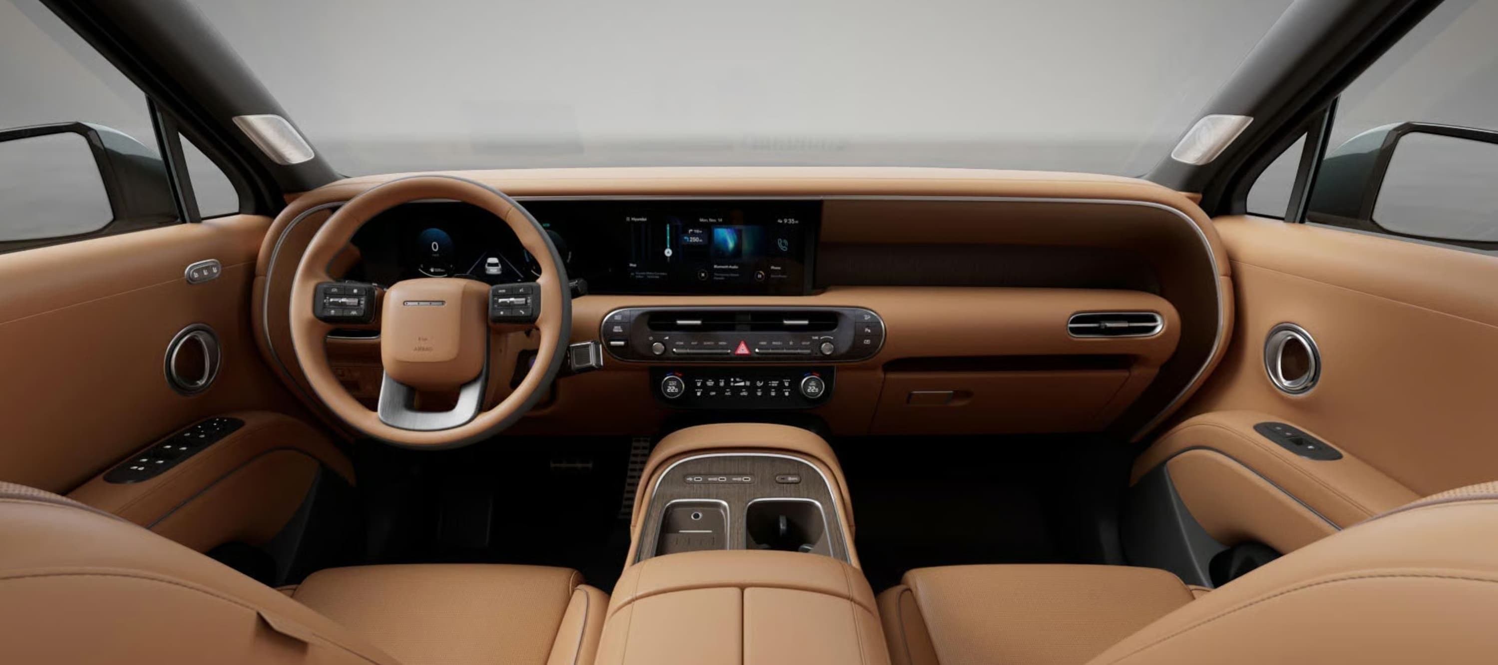 Габариты машины — 5060 х 1980 х 1805 мм, колесная база — 2970 мм. Внедорожник оснащен гибридной системой Hyundai нового поколения TMED-II на базе 2,5-литрового турбомотора, мощность составляет 334 л.с. В состав системы входит 6-ступенчатый «автомат».
