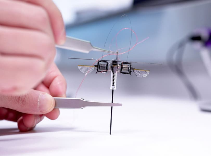Инженеры из Массачусетского технологического института разрабатывают крошечного робота, похожего на пчелу. Он умеет зависать в воздухе, быстро махать крыльями и, в будущем, сможет выполнять искусственное опыление в теплицах или даже на других планетах.