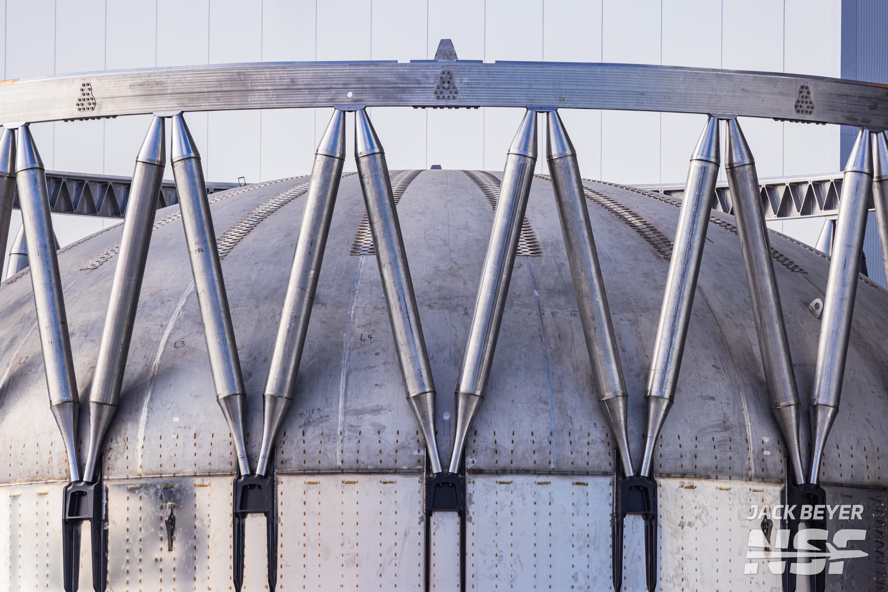 Джек Бейер (Jack Beyer) из NASASpaceflight опубликовал изображения части испытательного образца Booster 18.3, предназначенного для новой ракеты Starship V3. По сути это верхняя часть ускорителя Super Heavy.
