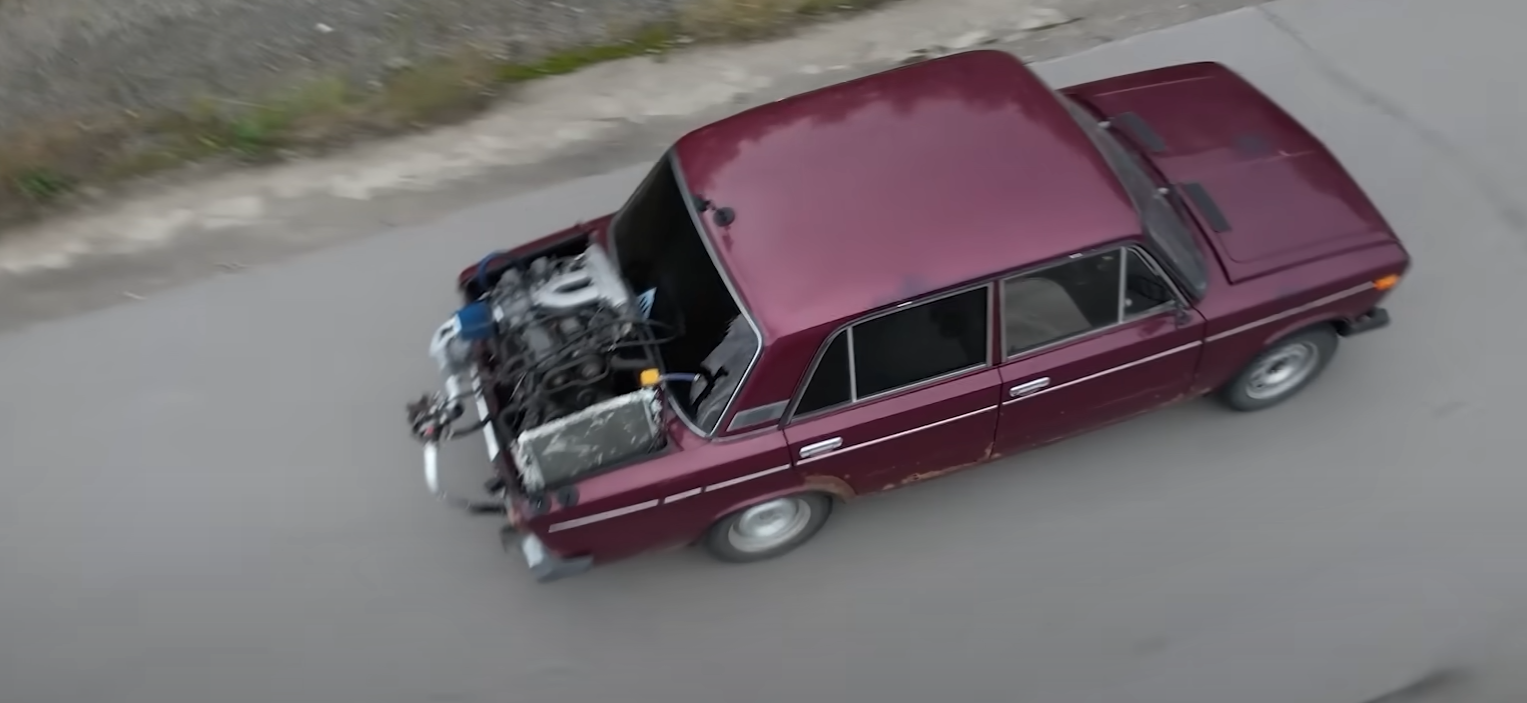 В старой Lada в багажник поместили отдельный мотор 1JZ с турбиной, чтобы создать разрежение в выхлопной системе основного агрегата. Это должно снизить сопротивление на выпуске, облегчив отток газов без изменений в самом моторе автомобиля.