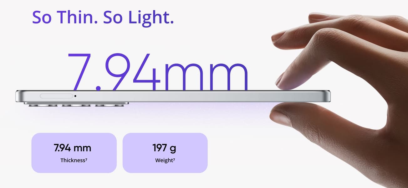 Несмотря на довольно большую емкость батареи, толщина не превышает 8 мм — она составляет 7,94 мм. Масса смартфона — 197 граммов. Фронтальная камера — 8-мегапиксельная, основная — с датчиком разрешением 32 Мп.