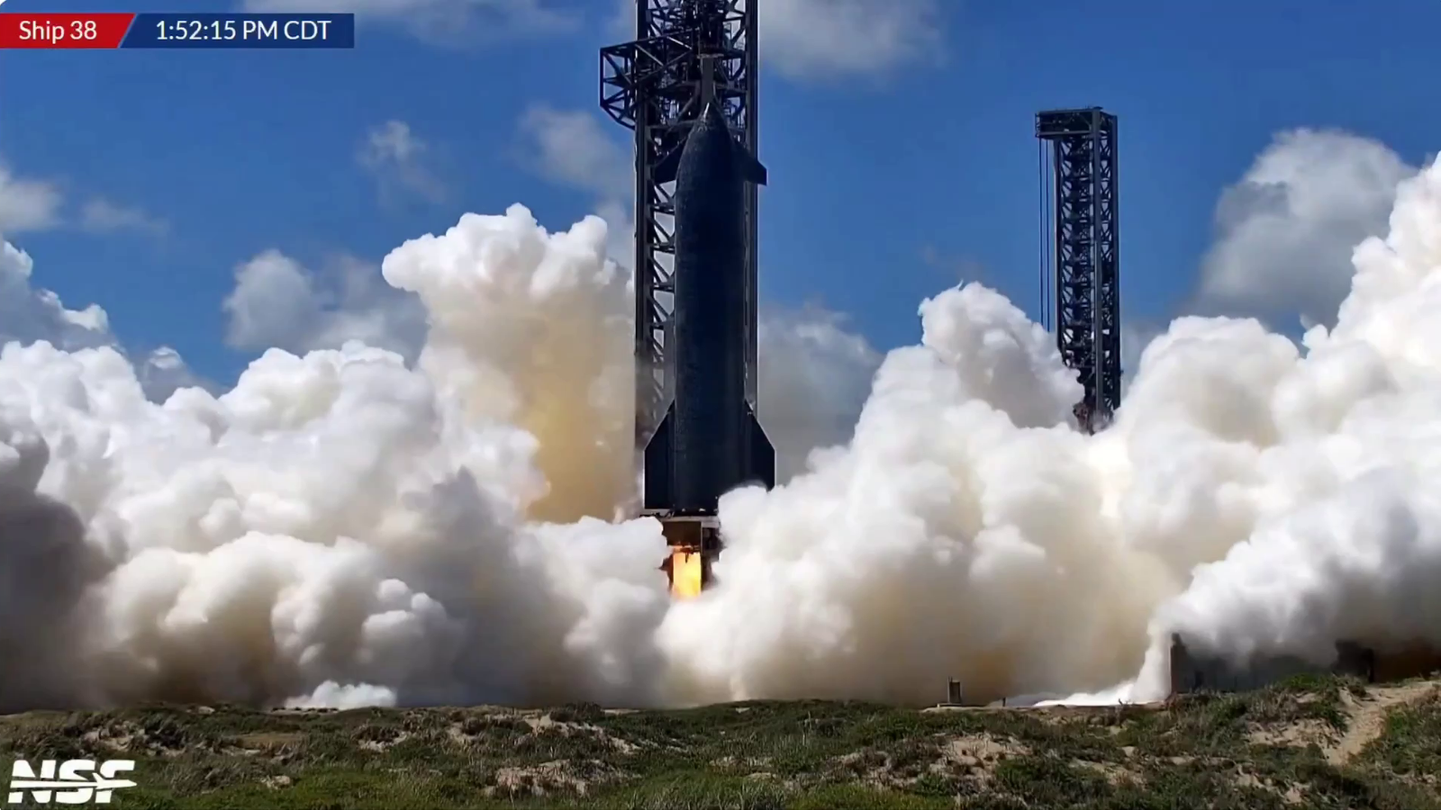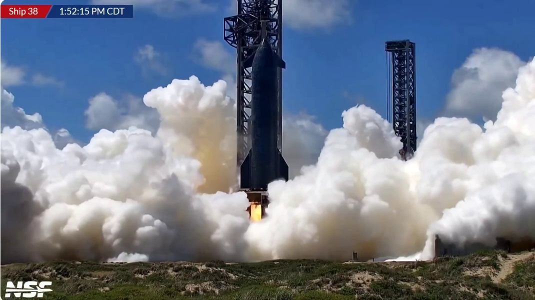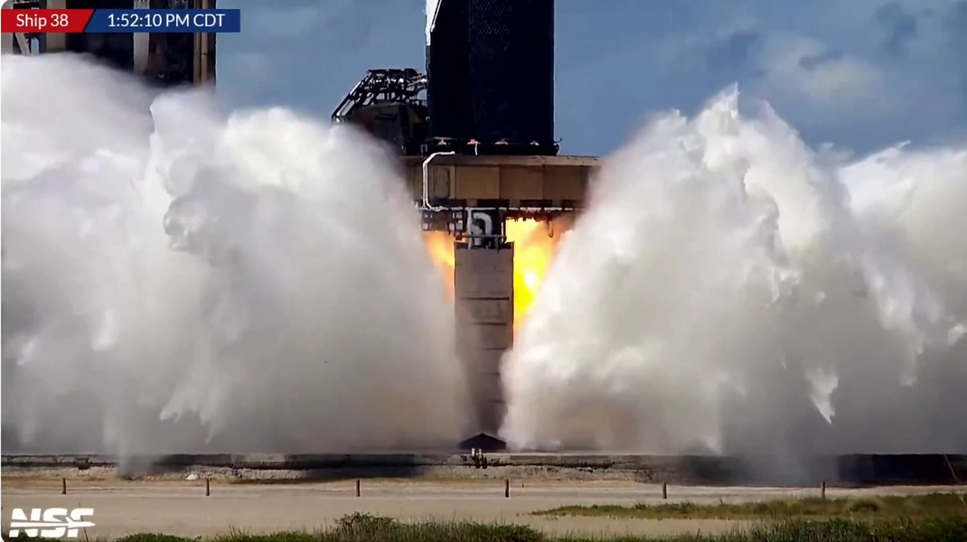 Сегодня на Starbase (Техас, США) состоялся огневой тест шести двигателей космического корабля Starship S38. Судя по визуальным оценкам, испытание прошло нормально — осталось дождаться официального подтверждения SpaceX. До этого огневые испытания Starship S38 дважды переносились.