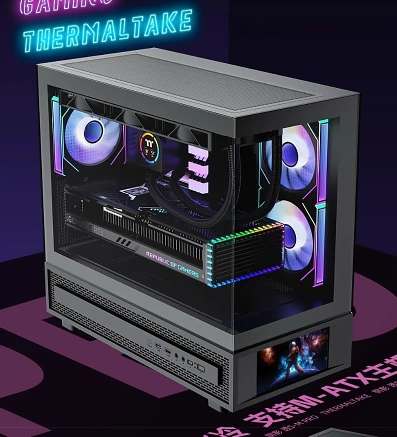 Корпус в размерах 449 x 222 x 415 мм подходит для материнских плат Mini-ITX и Micro-ATX. У него конструкция с обзором на 270 градусов и передняя панель с 6-дюймовым дисплеем разрешением 1480x720 при 60 Гц.