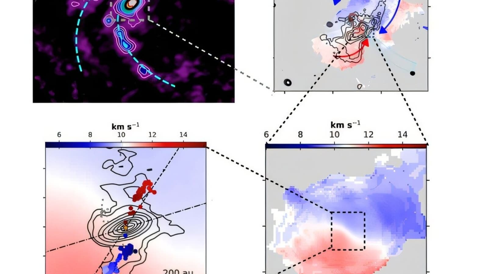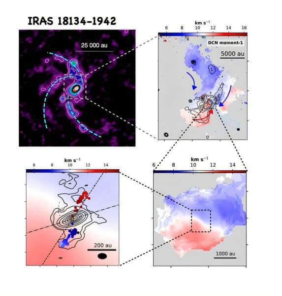 Используя комплекс телескопов ALMA и VLA, учёные впервые отследили движение газа от примерно 2500 астрономических единиц до 40 а.е. от протозвезды. Наблюдения проводились в массивном регионе звездообразования IRAS 18134-1942, расположенном в 1,25 килопарсека от Солнца.