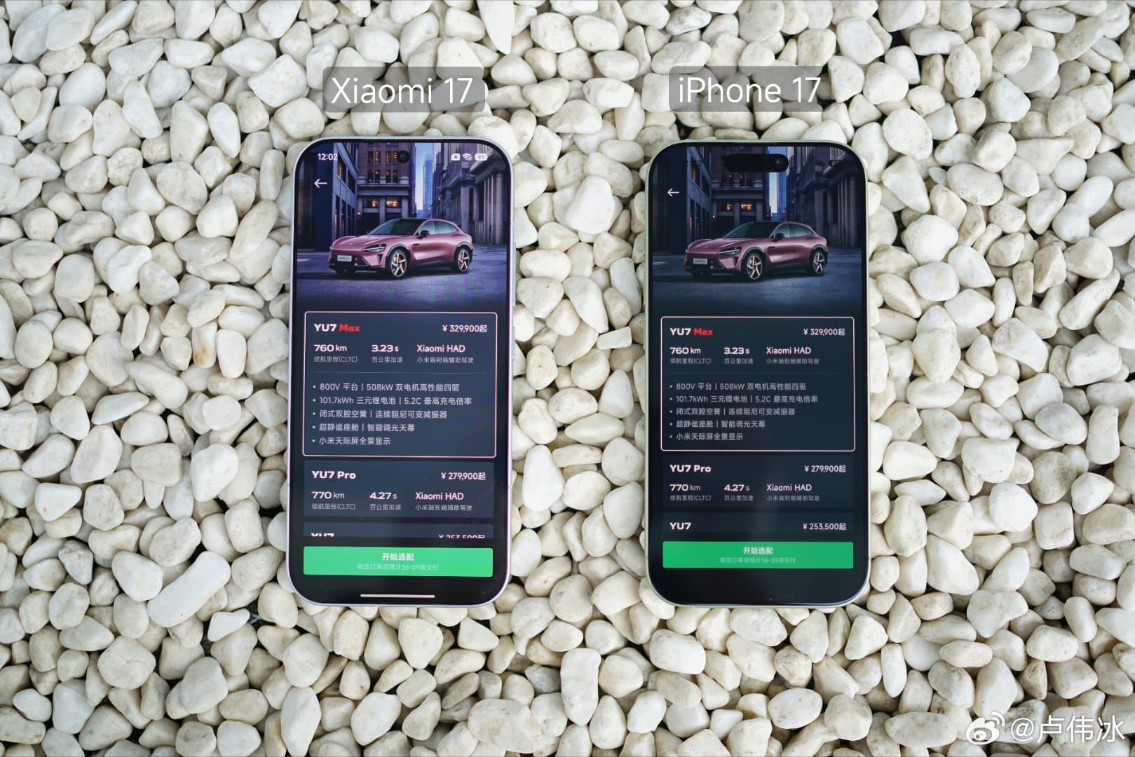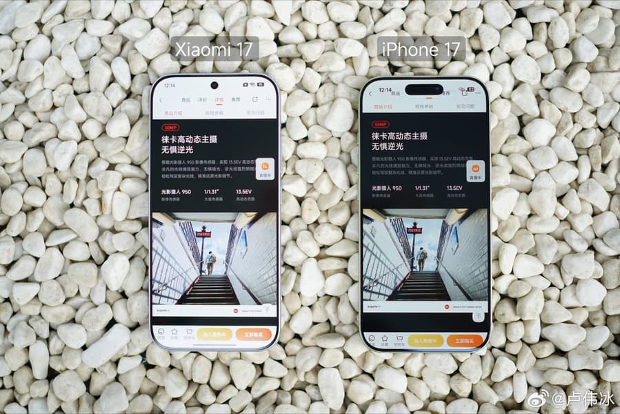 Даже при уровне яркости 25% Xiaomi 17 может похвастаться сверхвысокой яркостью в 3500 нит. По сравнению с iPhone 17, даже при ярком солнечном свете на улице экран отображает контент с большей чёткостью и яркостью.