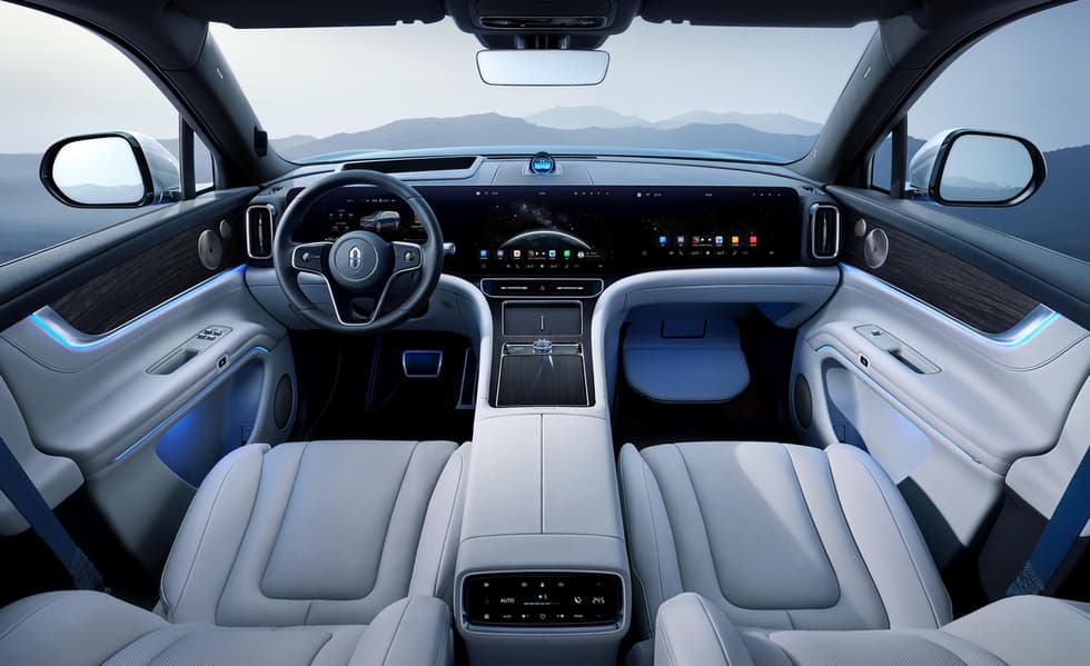 На российском рынке модель будет оснащена 1,5-литровым бензиновым двигателем в качестве генератора и двумя электромоторами общей мощностью 496 л.с. Смешанный запас хода может превышать 1200 км по циклу CLTC. Приборная панель с экранами во всю ширину вызывает стойкие ассоциации с новыми автомобилями Mercedes.