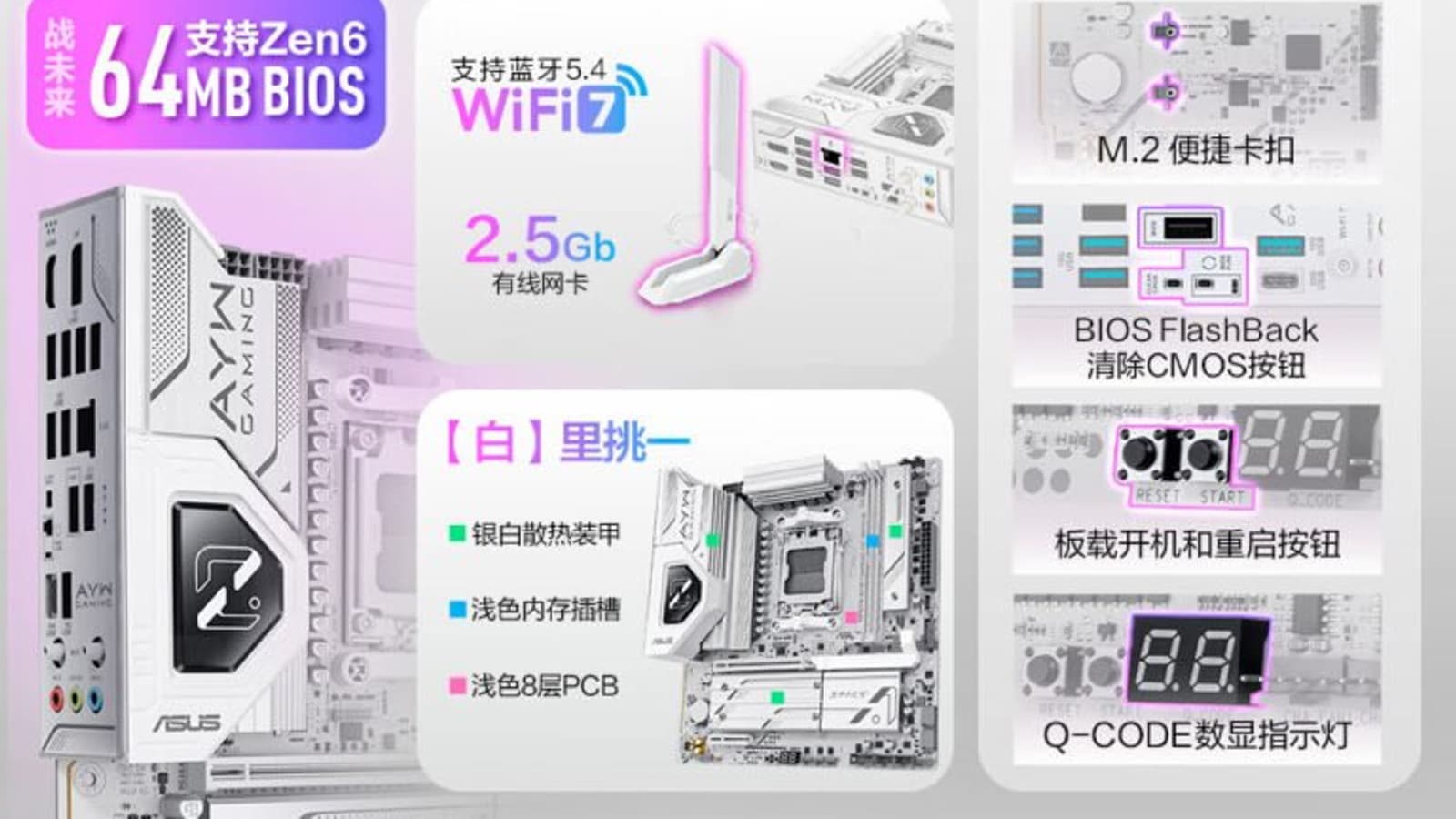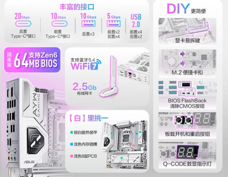 Сама AMD этого пока не говорила, но это подтвердила Asus. Специально или случайно, но эта информация попала в Сеть вместе с рекламными материалами. В частности, там описывалась системная плата на чипсете B850M, для которой указано, что она готова к Zen 6. Для этого у платы будет ещё и микросхема BIOS объёмом 64 МБ.