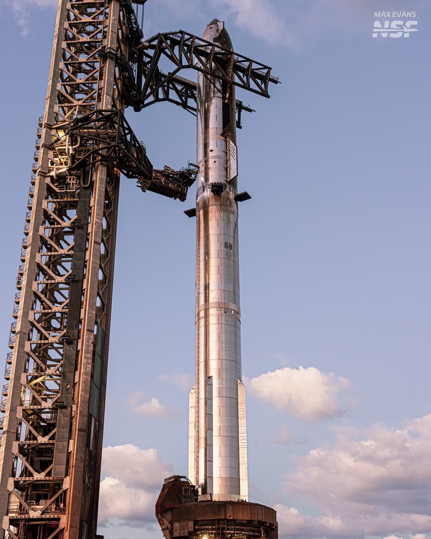 На стартовой площадке Starbase завершена сборка ракеты Starship с последними Super Heavy и Starship в этом поколении. Напомним, Starship считается самым большим летающим объектом в истории человечества.