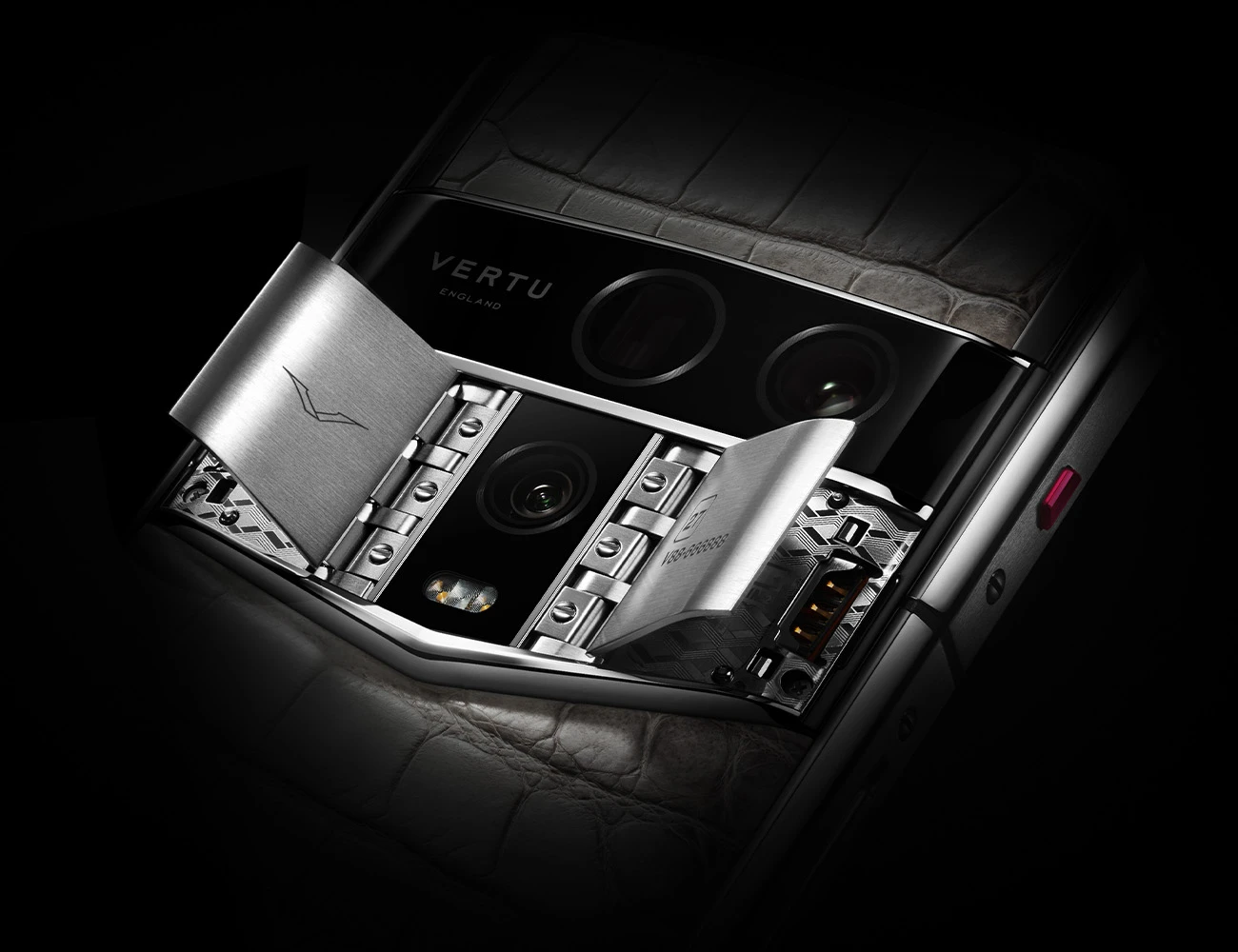 Для запуска ИИ или обращению к консьержу предусмотрена аппаратная рубиновая кнопка, впервые дебютировавшая для пользователей Vertu в 2002 году и переименованная сейчас из Ruby Key в Ruby Talk. В отделке используются телячья кожа, кожа аллигатора, 18-каратное золото и титан. Ещё одна особенность — отсек для SIM-карт в форме соколиного крыла.