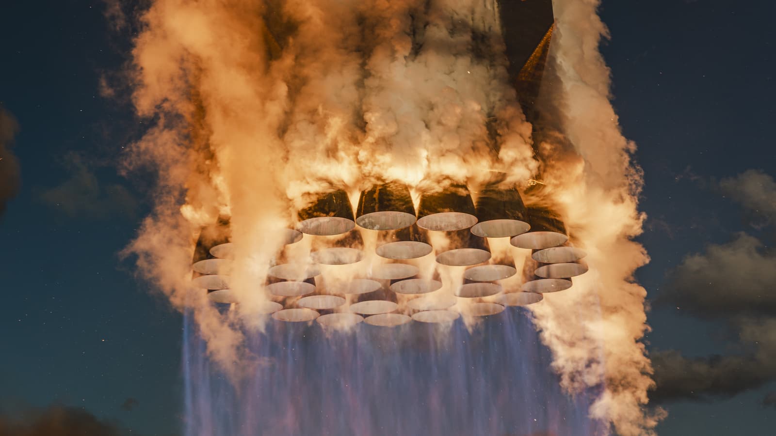 SpaceX на своей страничке в соцсети X опубликовала фото и видео с одиннадцатого испытательного полета ракеты Starship V2. На этот раз компания акцентировала внимание на двигателях Raptor ускорителя Super Heavy.