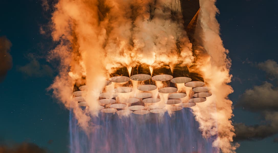 SpaceX на своей страничке в соцсети X опубликовала фото и видео с одиннадцатого испытательного полета ракеты Starship V2. На этот раз компания акцентировала внимание на двигателях Raptor ускорителя Super Heavy.