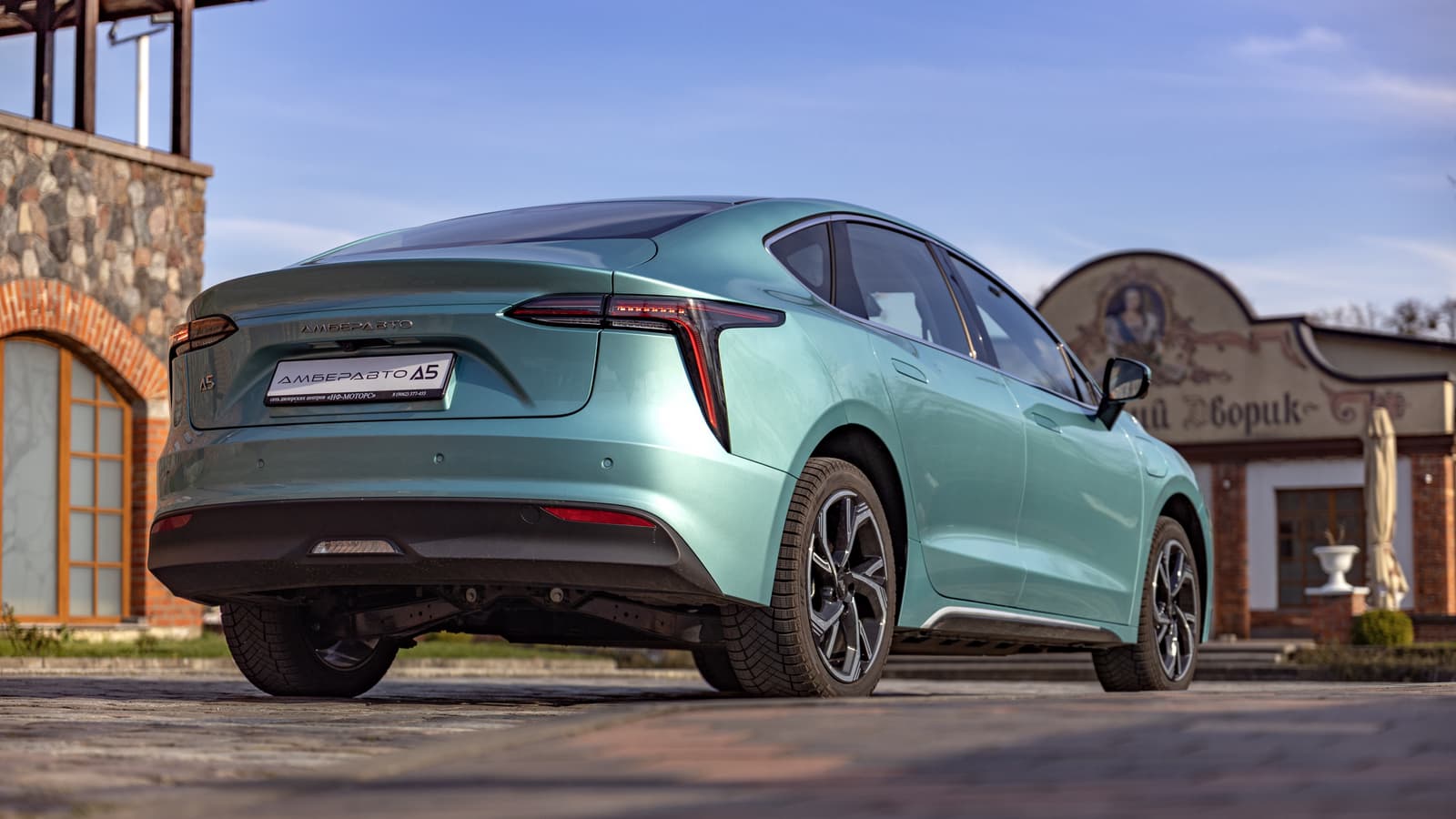 Локализация производства в Калининградской области обеспечивает «Амберавто А5» более стабильные логистические цепочки и лучшие торговые условия внутри России. Машина предлагает достойное оснащение в своем классе: электродвигатель мощностью около 160 л.с., аккумулятор емкостью 60,2 кВтч и заявленный запас хода до 520 км по методике CLTC, а также относительно просторный салон и современное оснащение (двойной дисплей, функции обогрева передних сидений, рулевого колеса, зеркал заднего вида и заднего стекла, интеграция с навигацией).