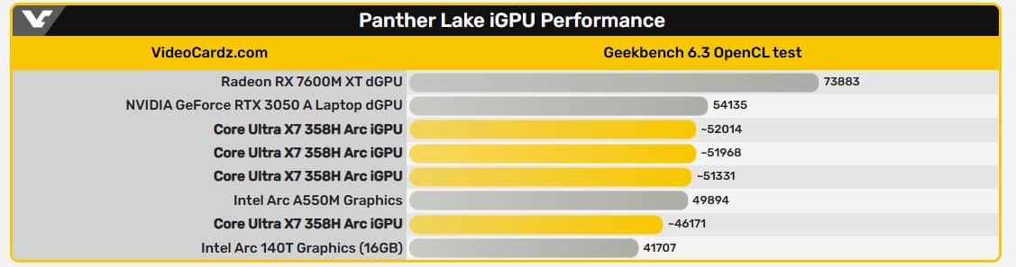 Флагманский процессор Core Ultra X7 358H линейки Panther Lake снова засветился в тестах, и ещё раз показал огромный потенциал своего графического ядра.