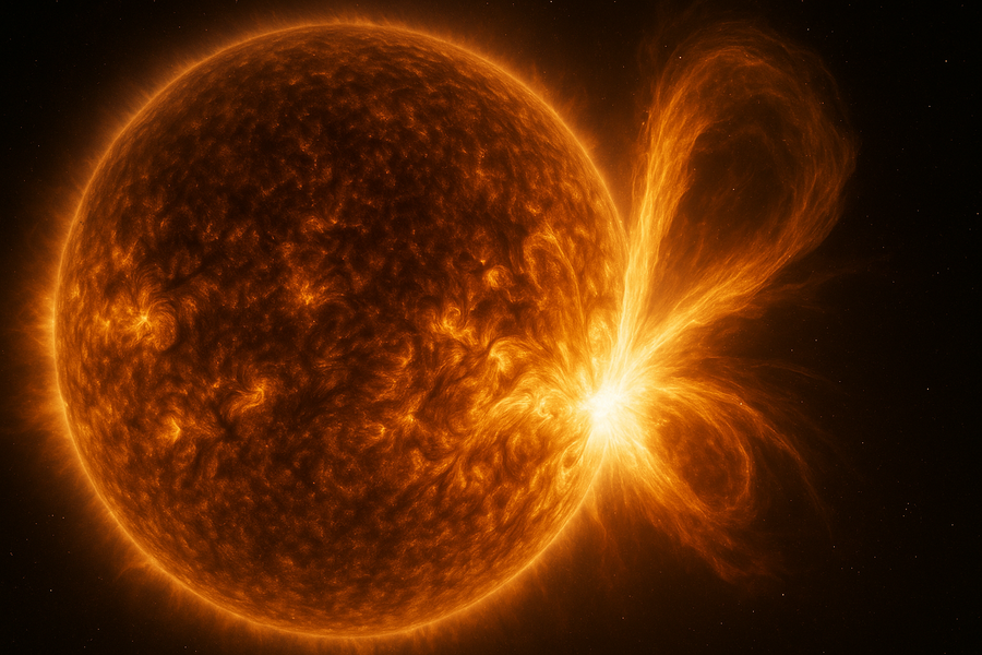 Ранее наблюдатели подтвердили, что взрыв произошёл на обратной стороне Солнца, событию предшествовало два средних выброса плазмы в северном направлении.