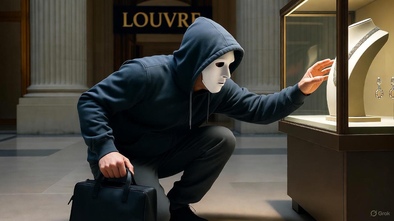 19 октября грабители проникли в «Галерею Аполлона» Лувра и украли 9 ювелирных украшений из коллекции Наполеона III, включая тиару и ожерелье. Ущерб — €88 млн. Корона императрицы Евгении найдена сломанной на улице. Бриллиант «Регент» на 140 карат грабители не забрали.