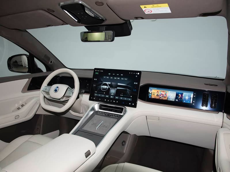 Главные особенности Denza N8L — внушительные размеры (5200 мм в длину и колёсная база 3075 мм), салон на шесть мест и богатое оснащение, включая холодильник, мультимедийный экран для пассажиров и массажные кресла. Внутри — до пяти дисплеев: 50-дюймовый проекционный с дополненной реальностью, 17,3-дюймовый в составе медиасистемы и 13,2-дюймовый дисплей для переднего пассажира.