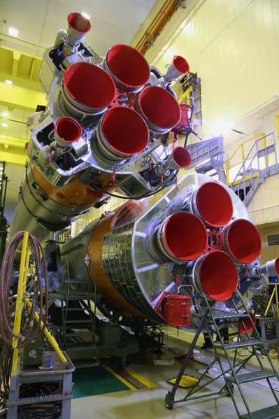 «Пакет» ракеты состоит из центрального блока и четырех боковых. Сначала на стапель укладывается центральный блок (вторая ступень), к которому по очереди крепят четыре боковых блока (первая ступень). После сборки «пакета» его стыкуют с третьей ступенью и головным обтекателем, в котором находится полезный груз (космические аппараты) и разгонный блок. При старте «Союза» одновременно включаются первая и вторая ступени. Примерно через 2 минуты полёта отделяется первая ступень, но продолжает работать вторая.