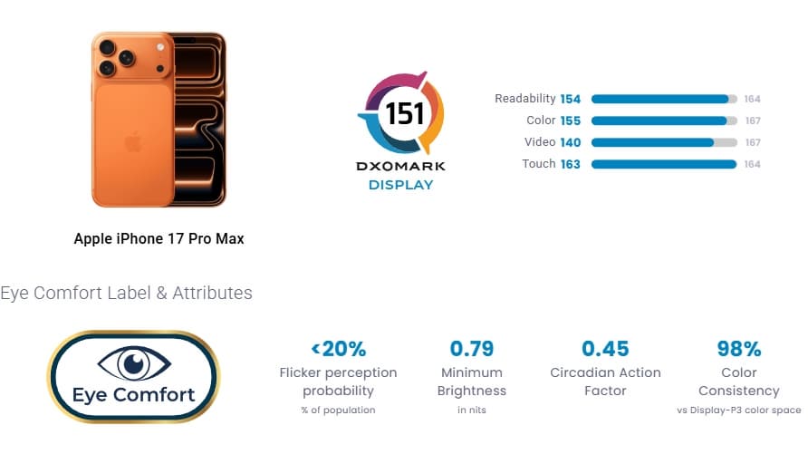 Авторы DxOMark оценили новинки линейки iPhone 17, но на этот раз они тестировали не камеры, а экраны. Причём сразу трёх моделей: iPhone Air, 17 и 17 Pro Max.