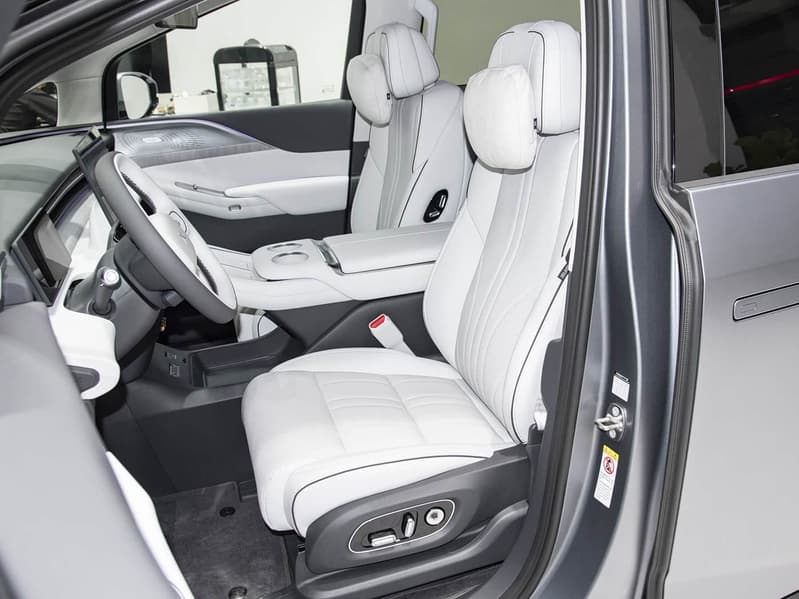 В салоне — 17,3-дюймовый центральный экран, цифровая панель приборов с экраном диагональю 10,25 дюйма, 21-дюймовый проекционный экран. Для пассажиров второго ряда предусмотрены кресла «нулевой гравитации» и 21,4-дюймовый экран, а задний ряд складывается в пропорции 4:6.