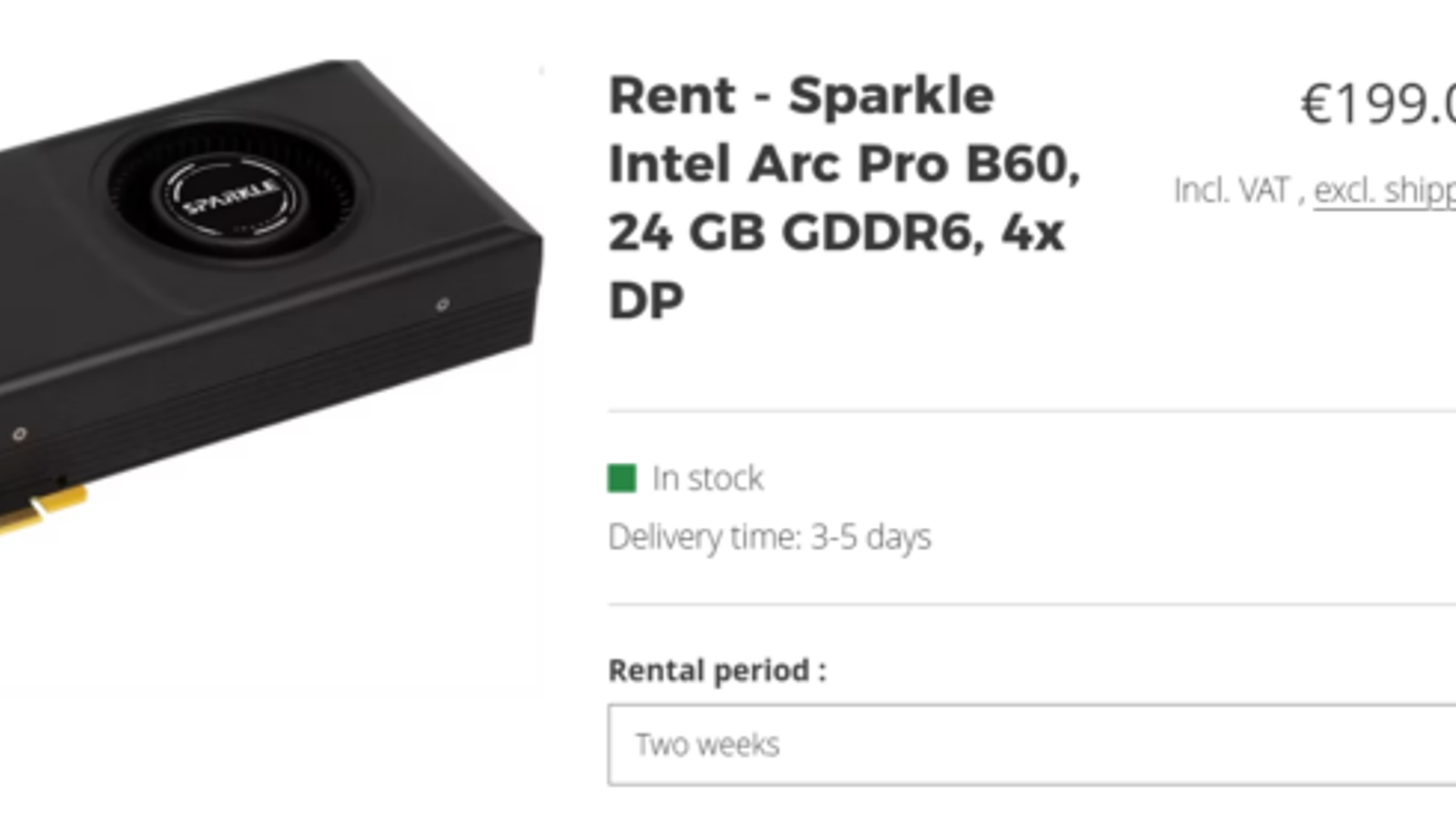 Видеокарта Intel Arc Pro B60 с 24 ГБ является очень доступным предложением, если говорить именно об объёме памяти. К примеру, необычная пассивная версия в Австралии без учёта налогов стоит 530 долларов. В Европе карта намного дороже, и на рынке появилось необычное предложение - аренда.