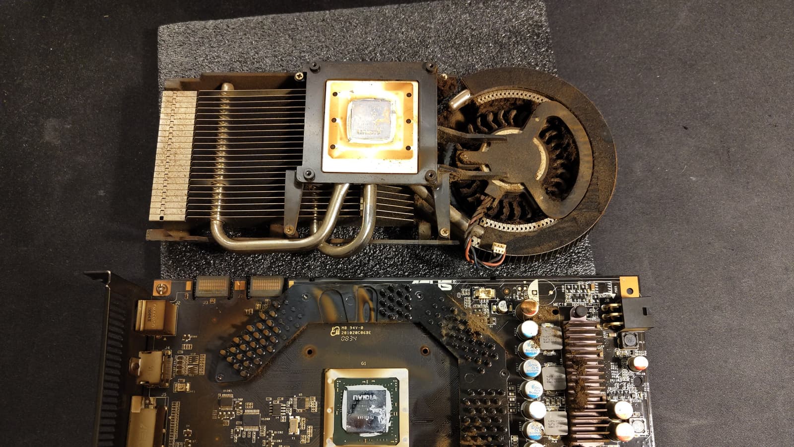 Несмотря на такое состояние, карту удалось идеально очистить, и она прекрасно заработала. Конечно, GeForce 9800GT на сегодняшний день не имеет особого смысла, как игровое решение, но конкретно этот экземпляр, вероятно, уже имеет какую-то коллекционную ценность.