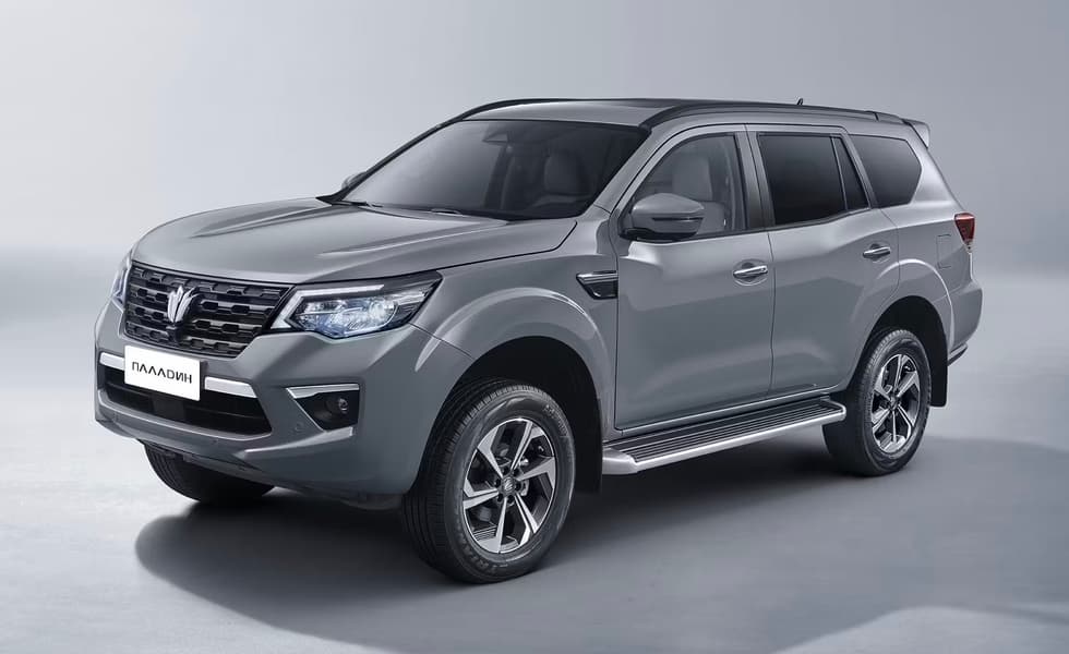Oting Palasso больше «Паладин» (длина — 5252 мм, колесная база — 3150 мм), а цены с учетом прямой скидки такие: 3,549 млн рублей и 3,799 млн рублей. Агрегаты у Palasso такие же, как и у «Паладин»: платформа Nissan Navara, 2,0-литровый 218-сильный мотор Mitsubishi и 8-ступенчатый «автомат» ZF.