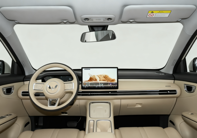 В салоне установлен 12,8-дюймовый сенсорный экран, цифровая панель приборов и беспроводная зарядка мощностью 50 Вт. Уже в базе предусмотрены круиз-контроль, камера заднего вида и шесть динамиков.