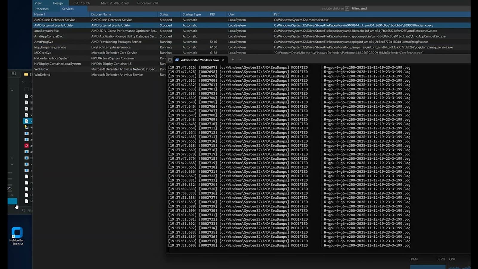 Для наглядности автор запустил команду, которая записывает все изменения на жёстком диске (используя ReadDirectoryChangesW). Каждая новая строка в окне консоли — это изменение файла. Как можно видеть, речь об огромном количестве записей - буквально тысячи за несколько секунд.