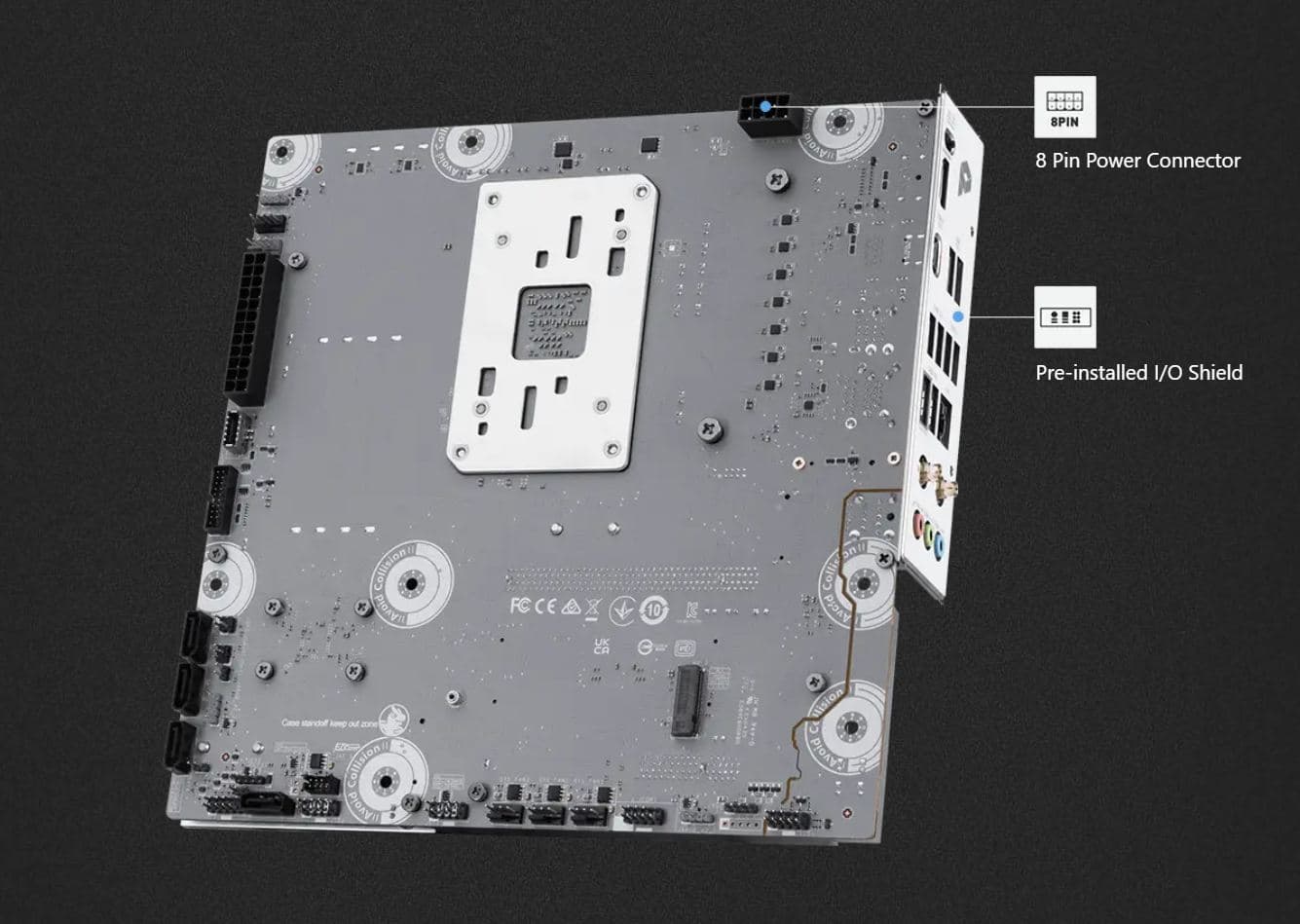 Плата формата Micro-ATX готова принять процессоры Ryzen 7000/8000/9000 и должна быть совместима с Ryzen нового поколения, которые выйдут в следующем году.