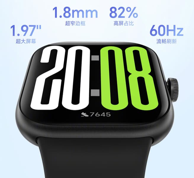 Компания сообщила, что диагональ экрана устройства составляет 1,97 дюйма, а ширина рамки — всего 1,8 мм. «Большой экран — это хорошо, а узкая рамка — это красиво», — такой подписью сопроводила компания опубликованную выше картинку. Кадровая частота экрана AMOLED составляет 60 Гц. Больше никаких подробностей не сообщается.