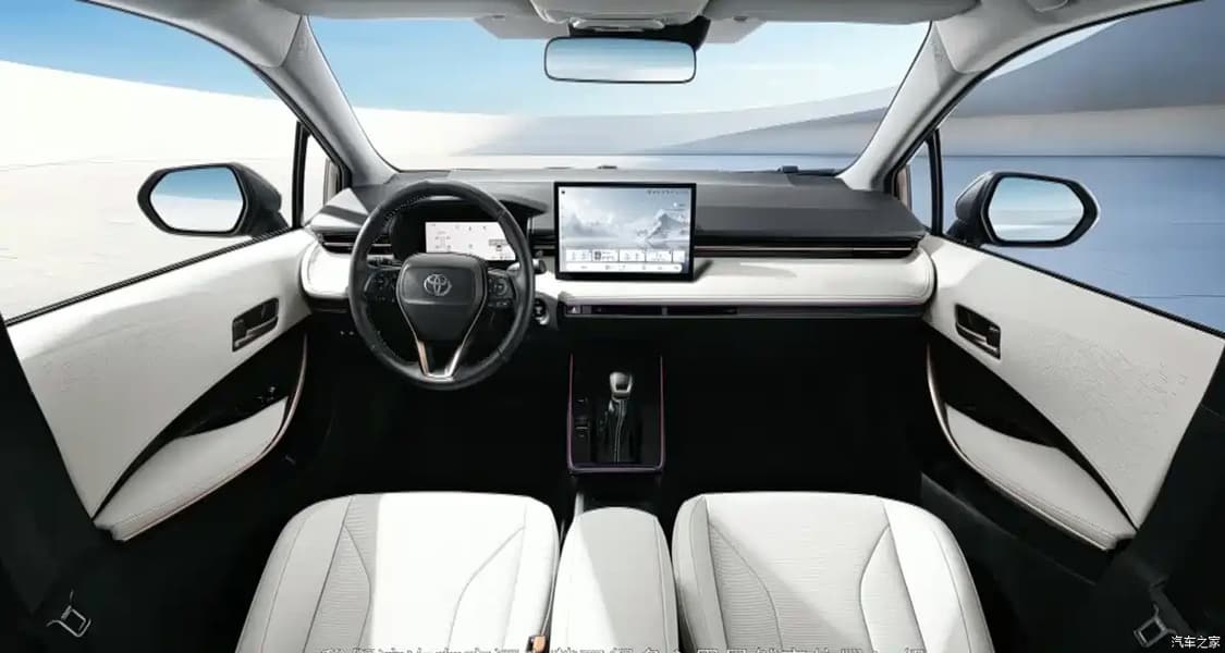 В салоне обновленной Corolla — цифровая приборная панель с экраном диагональю 8,8 дюйма и медиасистема с экраном диагональю 12,9 дюйма. Уже в базе модель оснащается фирменным комплексом систем помощи водителю Toyota Pilot.