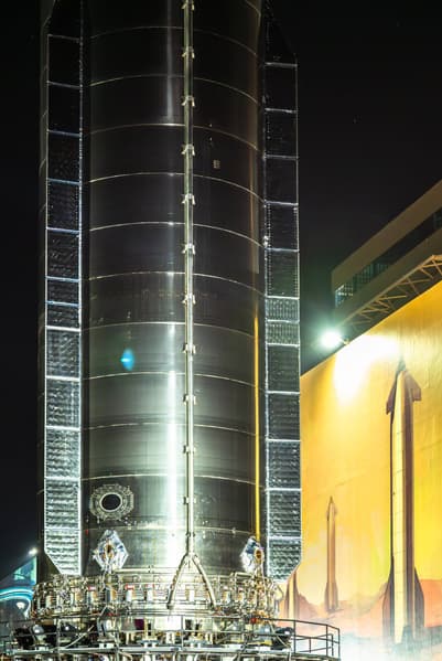 Сейчас ускоритель ещё не укомплектован финальными элементами: на нём отсутствуют аэродинамические рули, двигатели Raptor и часть внешних узлов. Эти компоненты установят позже — их отсутствие никак не мешает прохождению крио-тестов, где конструкцию проверят на прочность и поведение при экстремально низких температурах.