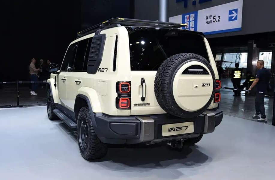 Внешне iCar V27 напоминает одновременно и Toyota Land Cruiser, и Land Rover. Длина составляет 4909 мм в версии с «рюкзаком» на задней двери (пластиковым боксом для различных вещей) и 5055 мм — в варианте с наружным запасным колесом. Ширина равна 1976 мм, высота — до 1894 мм при наличии рейлингов, а колёсная база — 2910 мм.