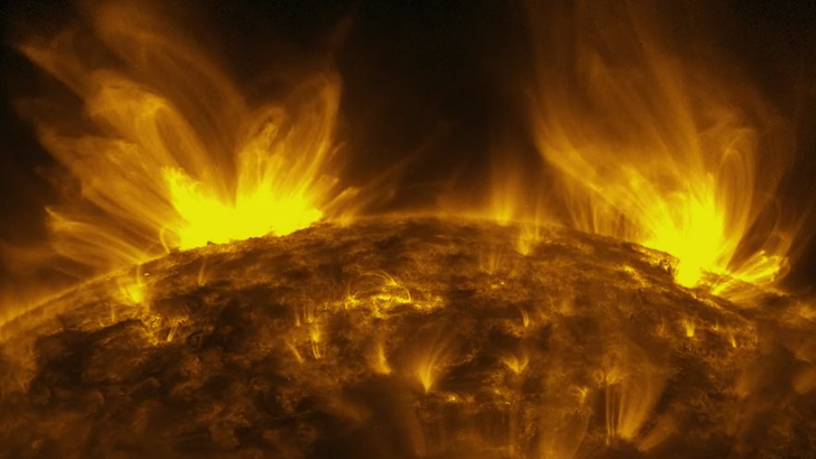 На восточном краю солнечного диска появились два крупных активных центра, которые медленно выходят на сторону, обращённую к Земле. Их появление вызывает ассоциации с началом ноября, когда похожая пара — будущие области 4274 и 4275 — лишь вступала в зону видимости, а затем почти десять дней формировала мощные вспышки и сильнейшую за пять лет магнитную бурю. Однако сходство ограничивается визуальной картиной: новые регионы пока демонстрируют умеренную активность и ещё не достигли уровня вспышек класса М.