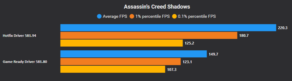 GeForce Hotfix версии 581.94 не является новой версией драйвера, поэтому скачивать его нужно вручную с сайта компании. Сама Nvidia не уточняет подробностей, лишь говорит, что исправление должно решить проблему с производительностью в некоторых играх, возникшую из-за обновления Windows 11 October 2025 KB5066835 [5561605].