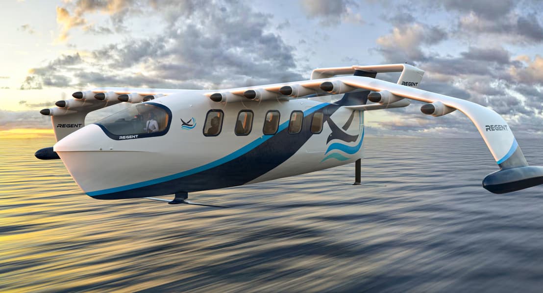 На авиасалоне Dubai Airshow 2025 американская Regent представила полноразмерный макет своего электрического пассажирского экраноплана Viceroy. Аппарат рассчитан на перевозку 12 человек либо до 1,6 тонны груза, при этом дальность полёта достигает 300 км, а крейсерская скорость — около 290 км/ч. Силовая установка состоит из 12 электромоторов.