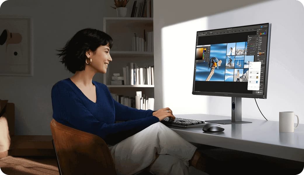 Тут используется 27-дюймовая панель IPS с разрешением 1440p. Xiaomi говорит о яркости 300 кд/кв.м, 95-процентном охвате цветового пространства DCI-P3, тонкой рамке и показателе ?E<1.
