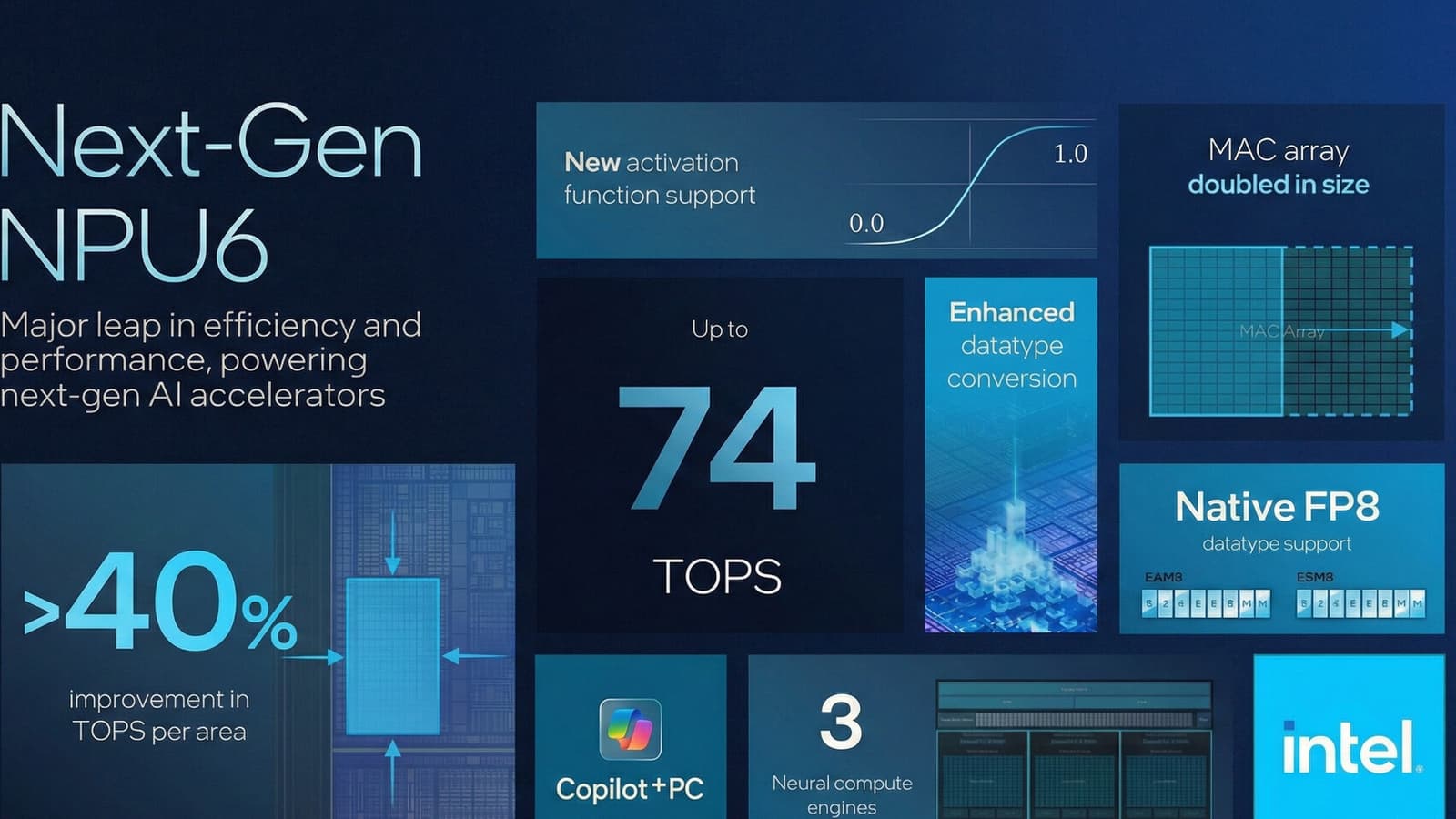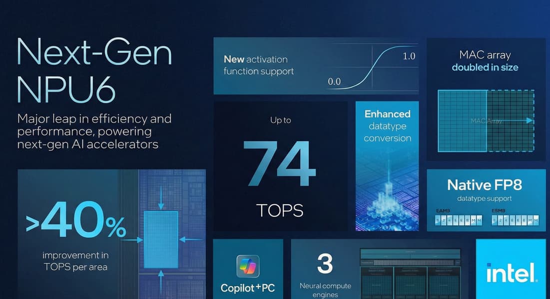 Причём они получат весьма мощный по современным меркам блок. Это будет NPU6 с производительностью 74 TOPS. Для сравнения, даже у новейших Panther Lake, которые ещё не вышли, будет NPU5 с 50 TOPS, а уж актуальные мобильные Arrow Lake и вовсе довольствуются 13 TOPS.