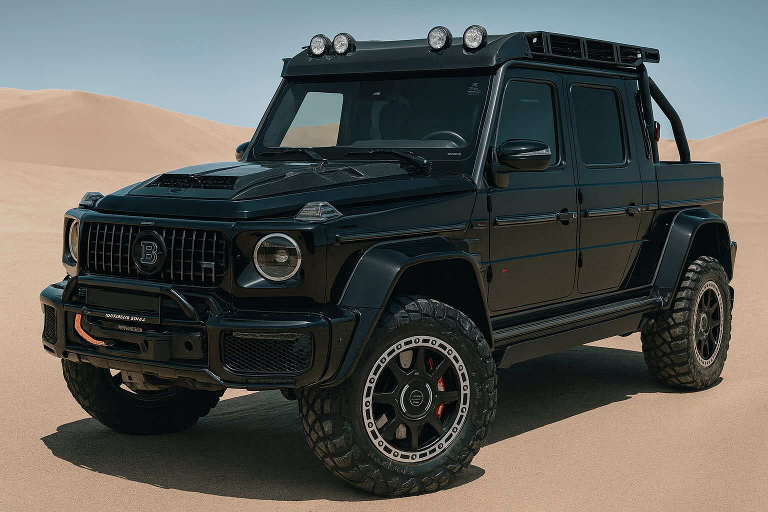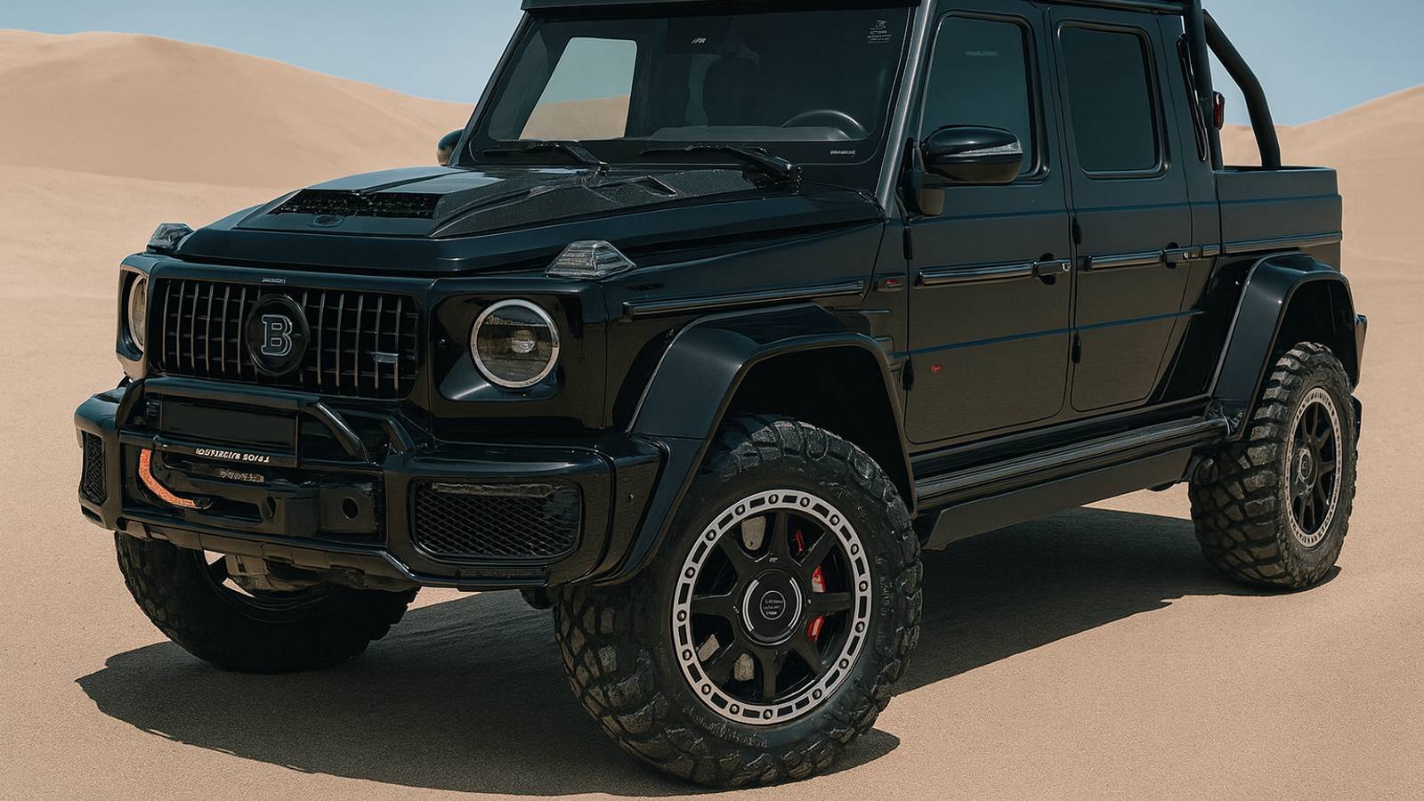 Чтобы превратить G 63 в полноценный внедорожный пикап, инженеры Brabus удлинили колёсную базу на 50 сантиметров, одновременно доработав трансмиссию. Грузовая платформа изготовлена из стали и карбона, а стандартную подвеску заменили на портальные мосты с регулируемыми амортизаторами. Вместо штатных установлены 22-дюймовые кованые диски. Благодаря этим изменениям дорожный просвет достиг впечатляющих 470 мм, а общая ширина машины составляет 2,1 метра.