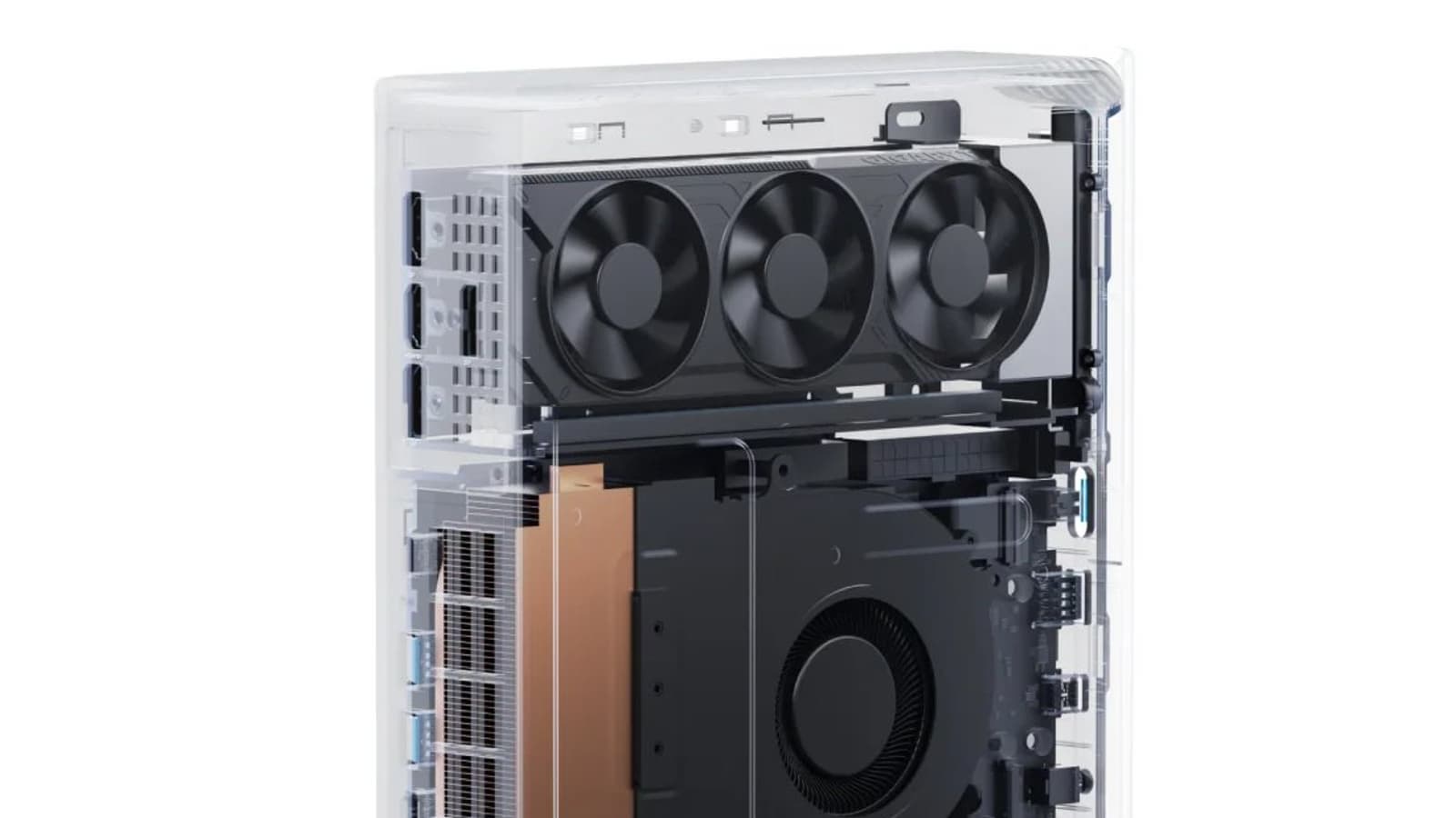 Компания Minisforum зачастую выпускает мини-ПК без дискретных видеокарт, но её новая модель AtomMan G1 Pro сможет похвастаться именно такой. Более того, это именно дискретная видеокарта, а не GPU, то есть внутри корпуса разместился обычный адаптер.